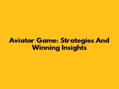 Aviator Game: Strategies And Winning Insights