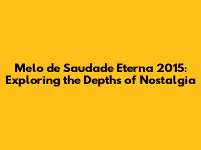 Melo De Saudade Eterna 2015: A Deep Dive Into Meaning