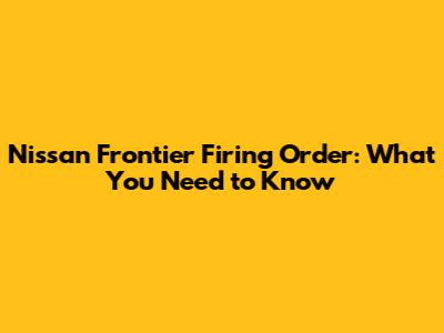 Nissan Frontier Firing Order: What You Need To Know