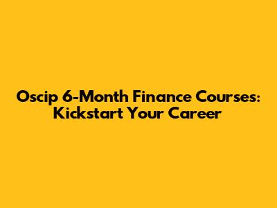 Oscip 6-Month Finance Courses: Kickstart Your Career