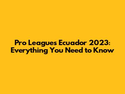 Pro Leagues Ecuador 2023: Everything You Need To Know