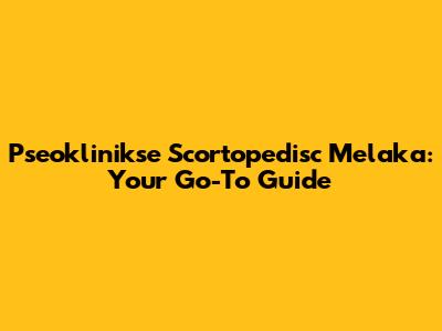 Hey guys! Looking for top-notch orthopedic care in Melaka? You've come to the right place! Let's dive deep into Pseoklinikse Scortopedisc Melaka, your ultimate destination for all things orthopedic. We'll cover everything from what makes this clinic stand out to the specific treatments and services they offer. So, buckle up and get ready for an informative journey!