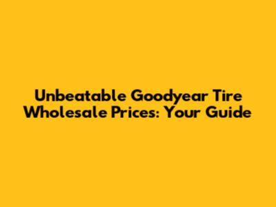 Unbeatable Goodyear Tire Wholesale Prices: Your Guide
