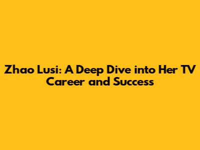 Zhao Lusi: Exploring Her TV Career And Rise To Stardom